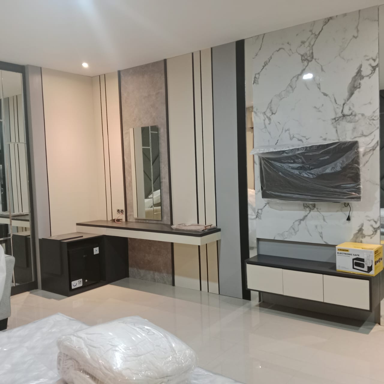 - roomset (area tidur, wardrobe, workdesk, kamar mandi)